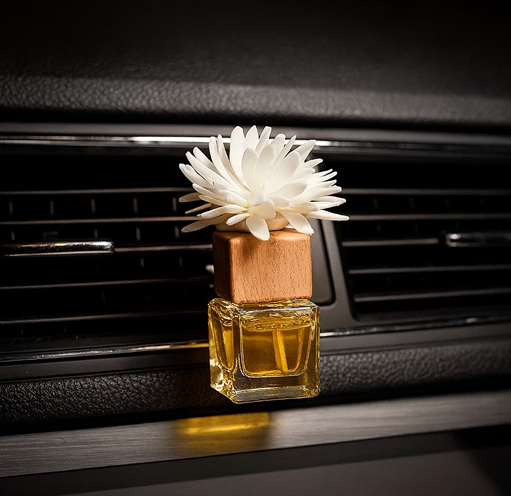 - Deze autogeurdiffuser verspreidt Fleur de Minuit via een stoffe bloem, verbonden met een geabsorbeerd stokje.