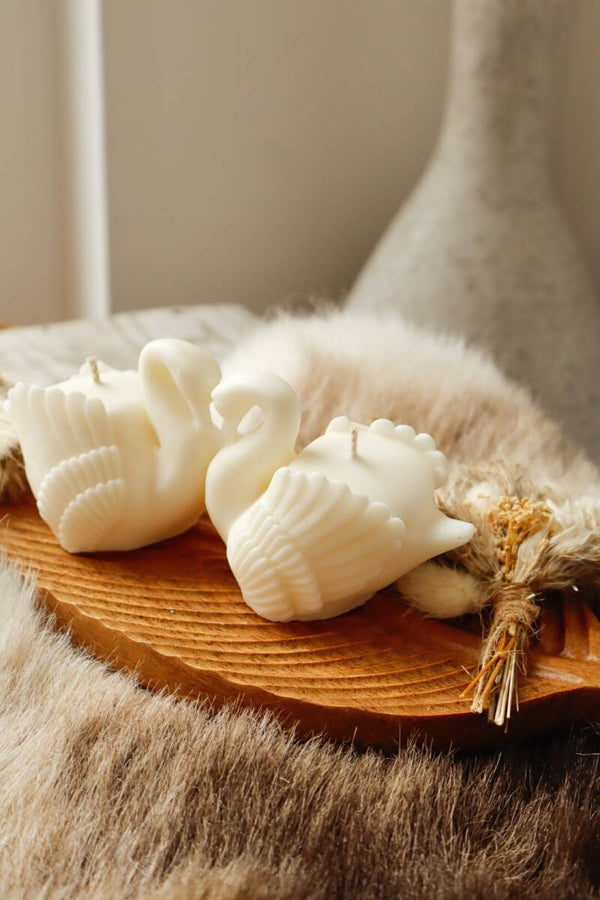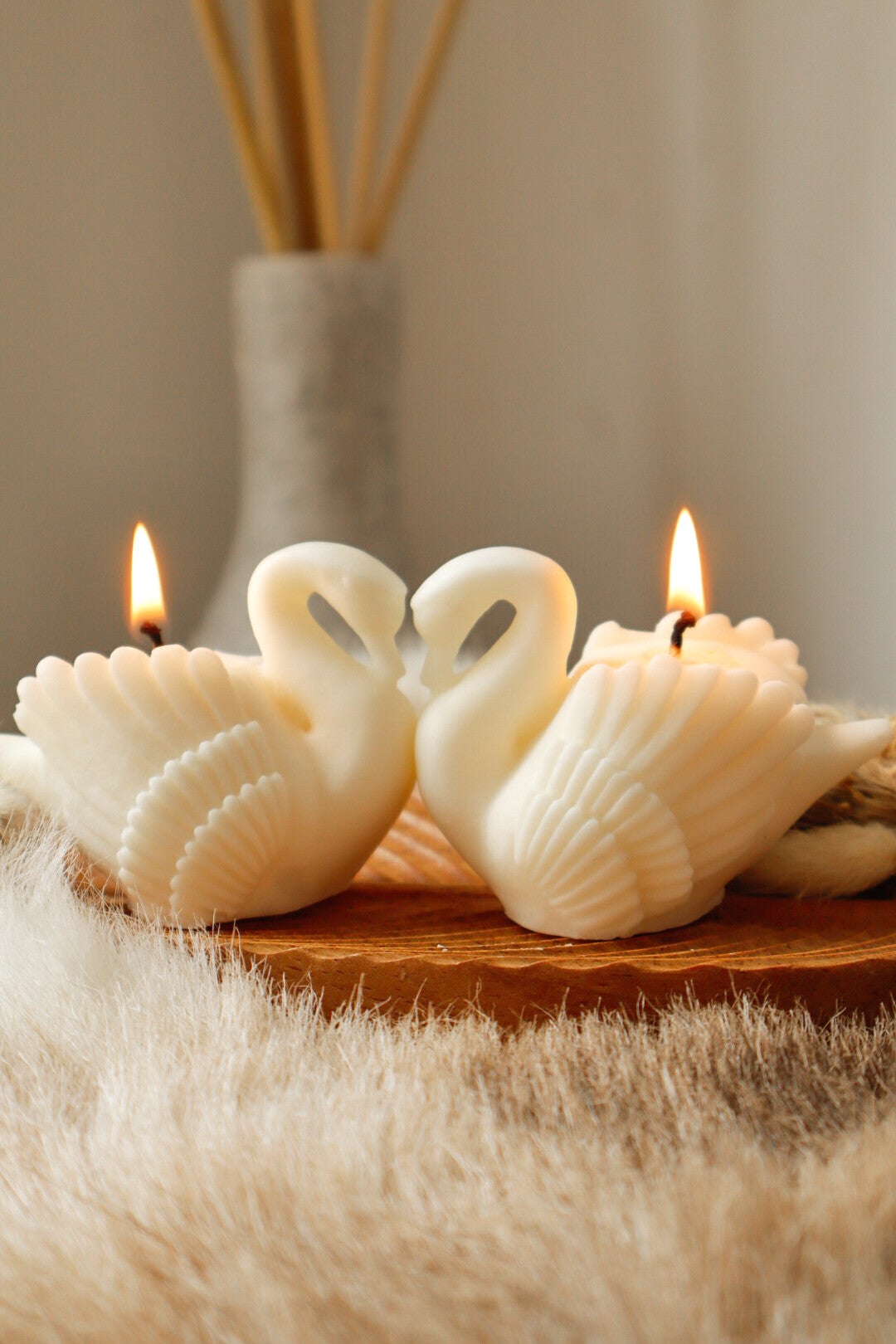 - Elegante kaars in de vorm van een zwaan — symbool voor zachtheid, liefde en sereniteit.