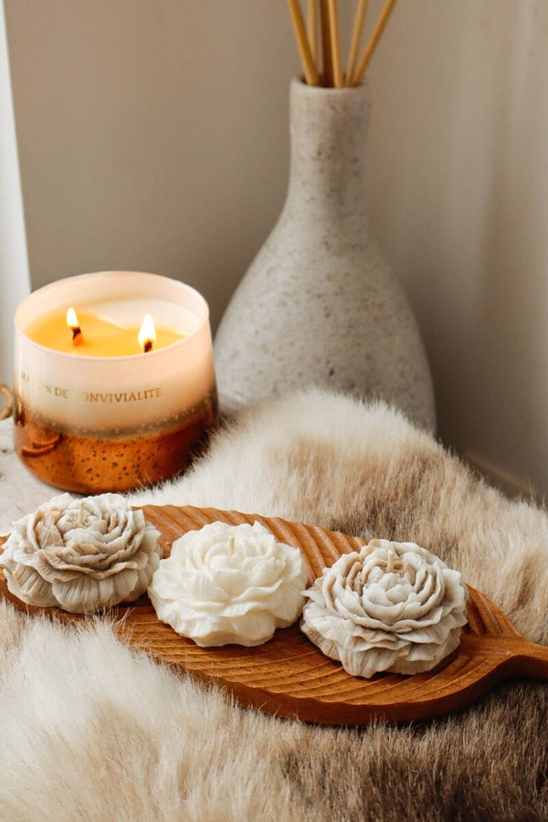 - Een stijlvolle kaars met zachte rondingen en een serene uitstraling.